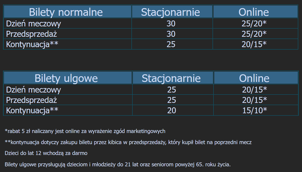 CENNIK - BILETY I KARNETY